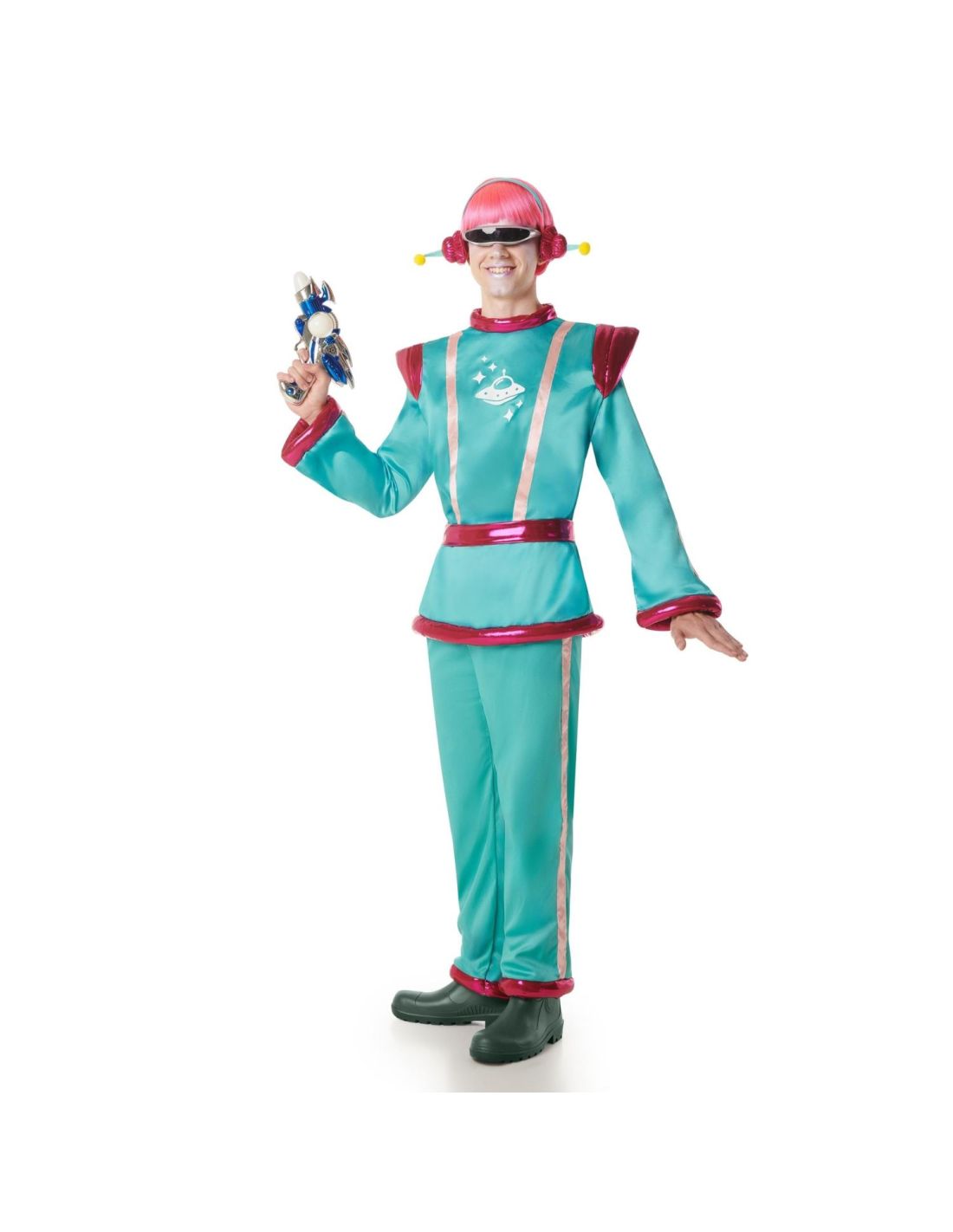Inspirado en el universo extraterrestre, este traje ofrece un diseño llamativo que no pasará desapercibido en ningún evento festivo. Sus tonos verdes y turquesa aportan un estilo futurista ideal para celebraciones donde la imaginación y la diversión son protagonistas.