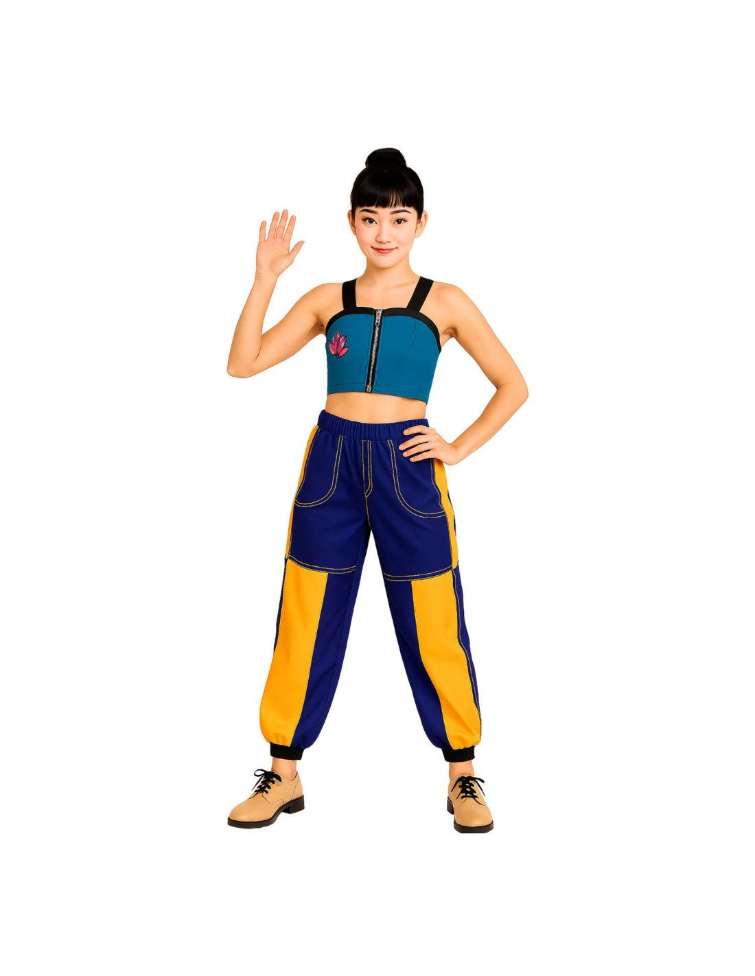 Con un diseño juvenil y actual, este traje está pensado para recrear el estilo de las estrellas del pop y las coreografías más dinámicas.