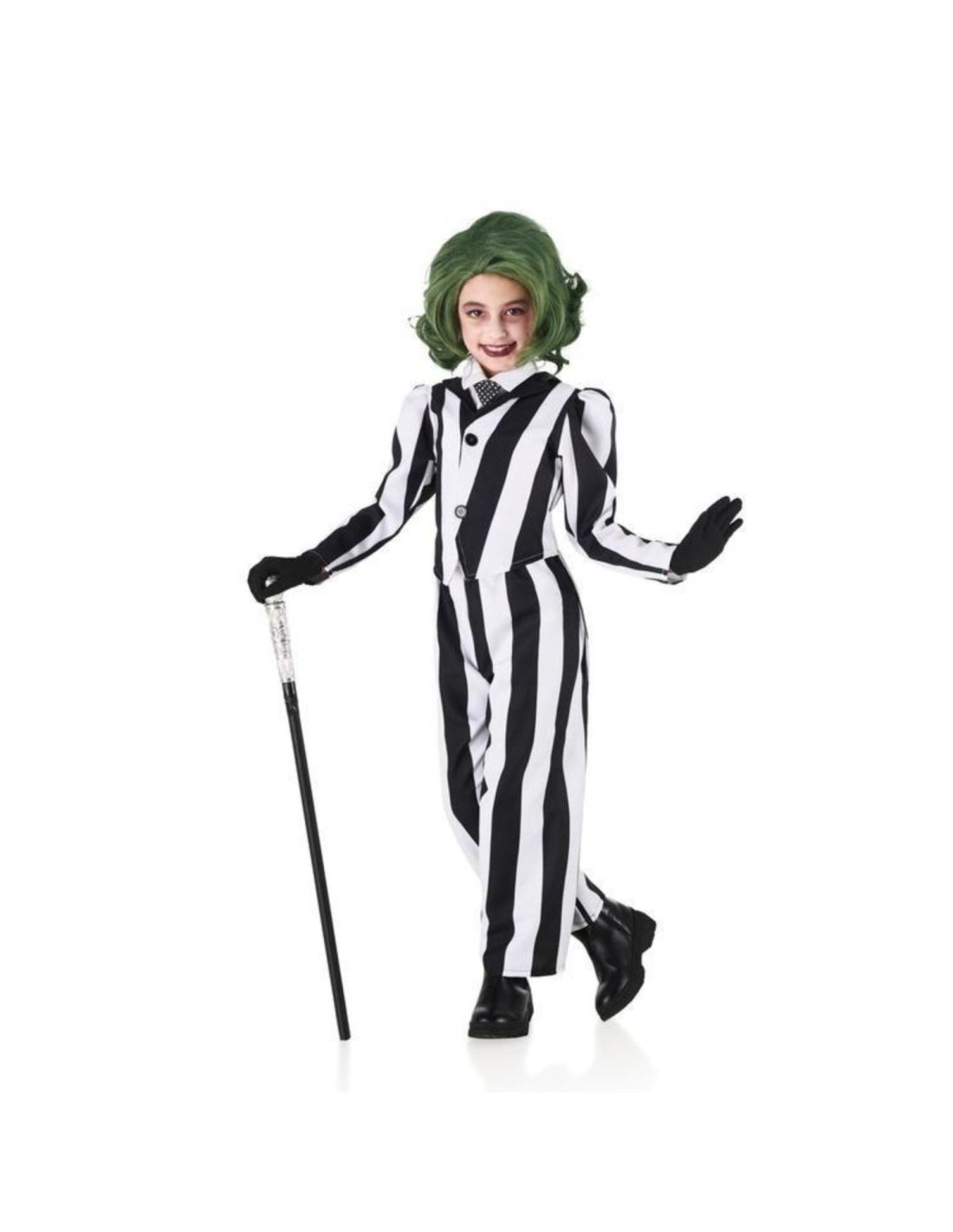 Inspirado en un famoso personaje del cine de terror y comedia, su diseño a rayas blancas y negras lo convierte en un disfraz llamativo y muy reconocible.