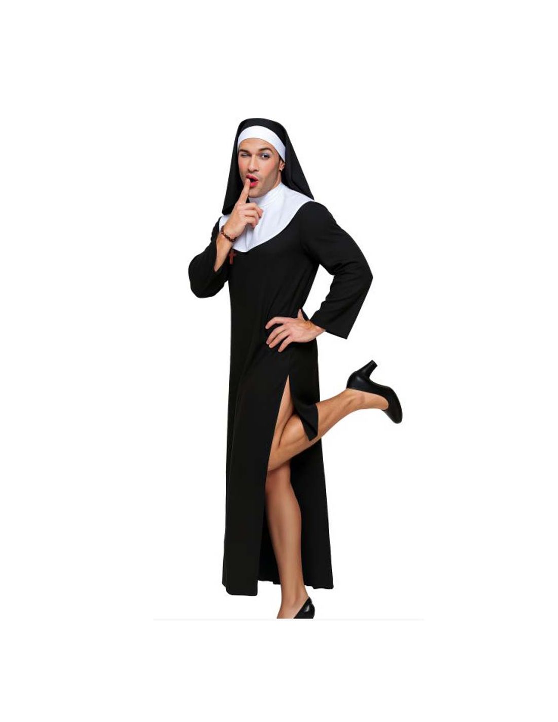 El conjunto incluye una cofia blanca y un vestido largo negro, confeccionados en tejido ligero y cómodo para facilitar el movimiento. Puedes adaptarlo al estilo que prefieras: religioso, cómico o terrorífico tipo “La Monja” de las películas de miedo.
