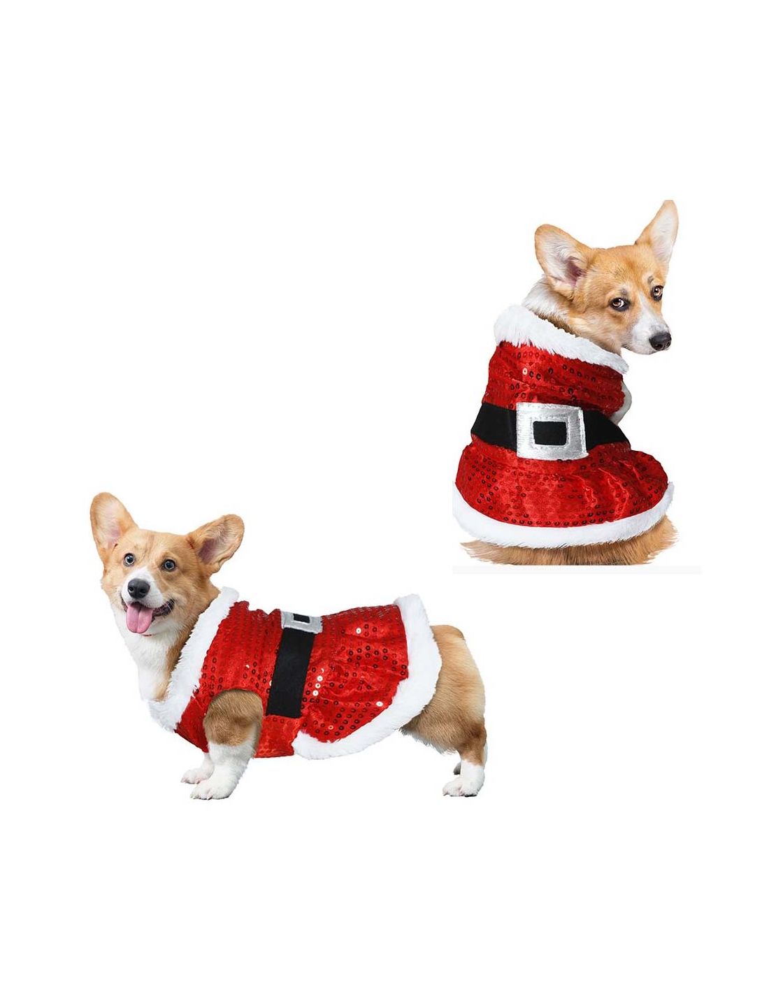 Haz que tu mascota brille estas fiestas con este disfraz de Papá Noel con lentejuelas.